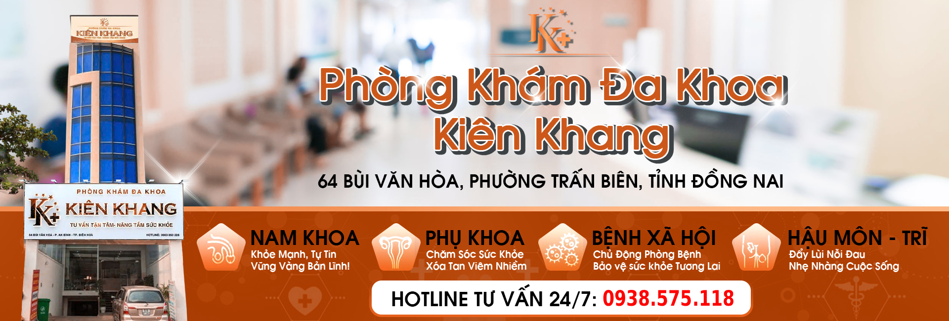 Phòng khám Đa khoa Kiên Khang là phòng khám chuyên khám và điều trị các bệnh lý: nam khoa, phụ khoa, bệnh xã hội, hậu môn -trực tràng, đình chỉ thai, da đước...Sở hữu đội ngũ y bác sĩ là những chuyên gia sức khỏe hàng đầu, nhiều năm kinh nghiệm cùng hệ thống trang thiết bị y tế hiện đại, phòng khám là cơ sở y tế chữa bệnh bệnh tại Đồng Nai được nhiều dân dân lựa chọn.